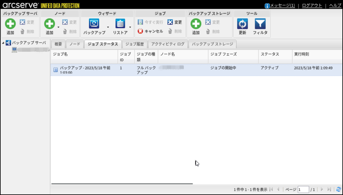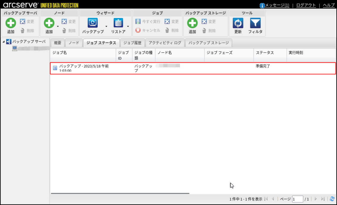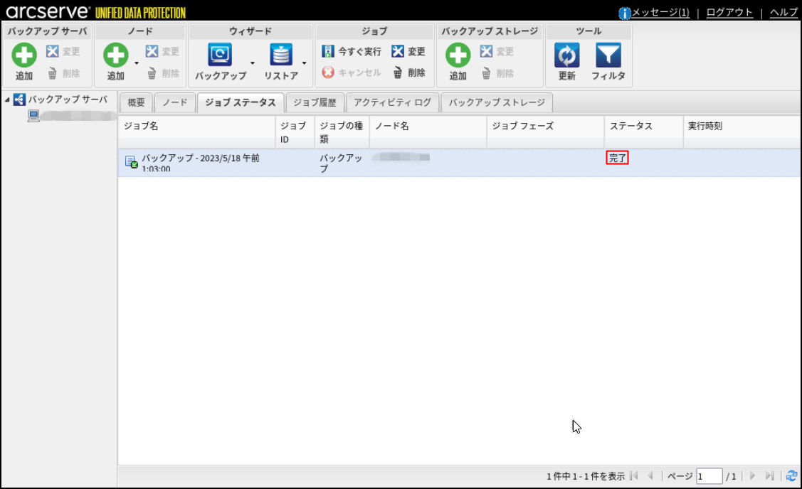 17.元の管理画面に戻り、[ジョブ ステータス]タブにバックアップジョブが設定されたことを確認します。