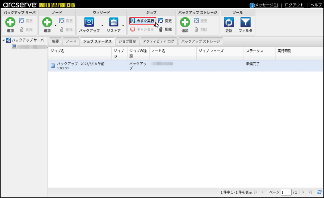 18.設定されたジョブを選択し、[ジョブ]の[今すぐ実行]をクリックします。