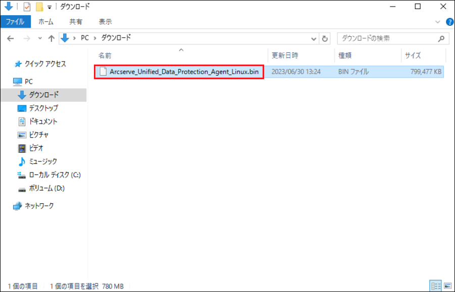 2.ダウンロードしてきたインストールファイル「Arcserve_Unified_Data_Protection_Agent_Linux.bin」をバックアップ対象のLinuxサーバーへ配置してください。