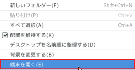3.バックアップ対象のLinuxサーバーにログインします。この後の作業をコマンドで実行するため、デスクトップ上で端末エミュレーターを開きます。以下のコマンドでの作業はこのバックアップ対象のLinuxサーバーで実施します。