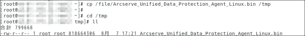 $ cp /file/Arcserve_Unified_Data_Protection_Agent_Linux.bin /tmp