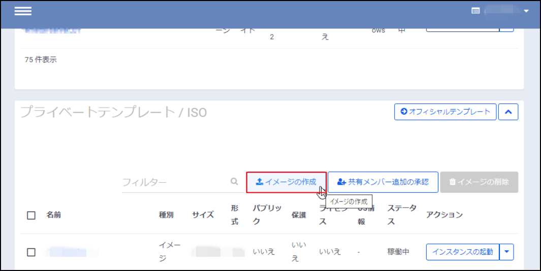 イメージをソースとして使用する:リストア元サーバーのOS種別と同等のオフィシャルテンプレート
