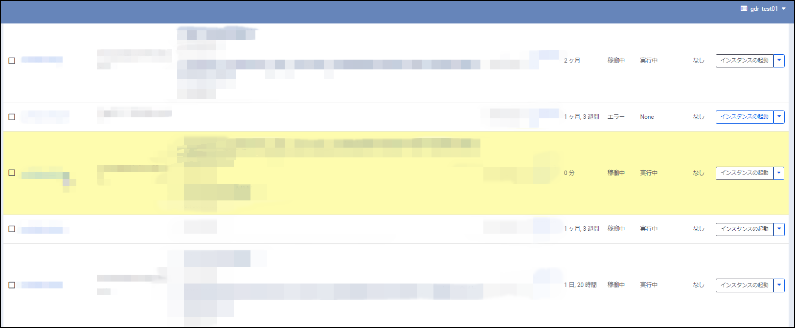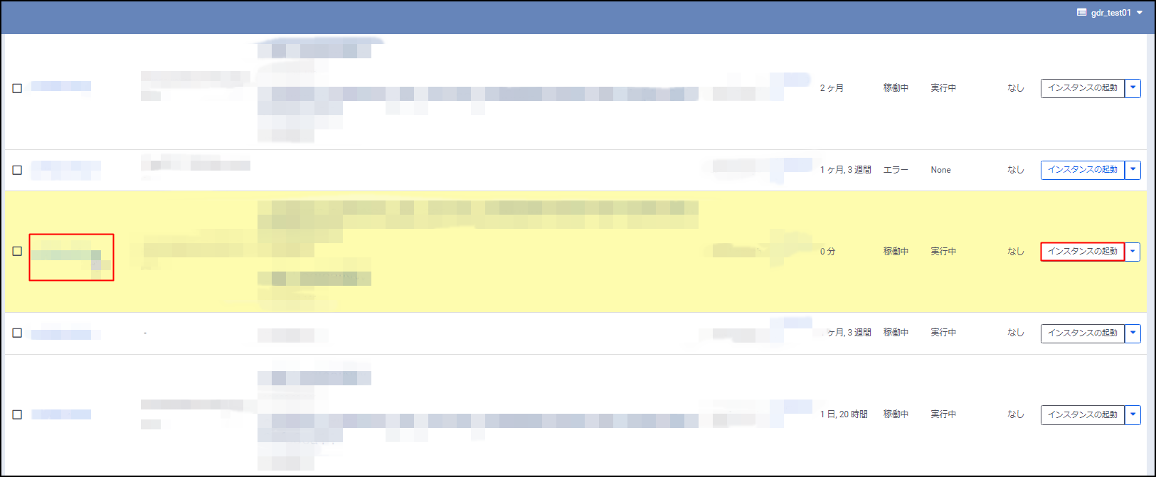 1.リストア用の一時インスタンスを起動し、インスタンス名の項目をクリックして「インスタンス」画面を表示します。