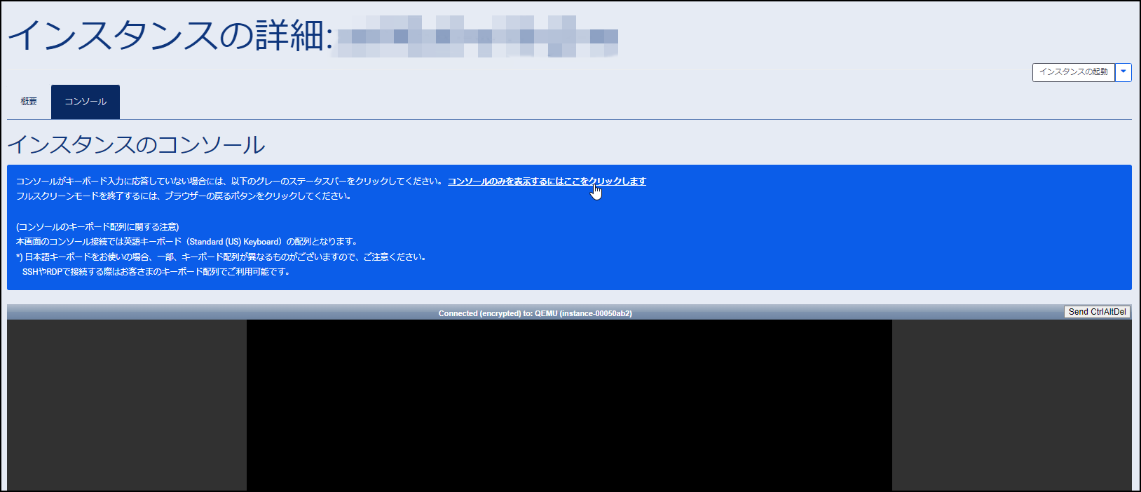 11.インスタンスの詳細画面にてインスタンス画面に入ります。