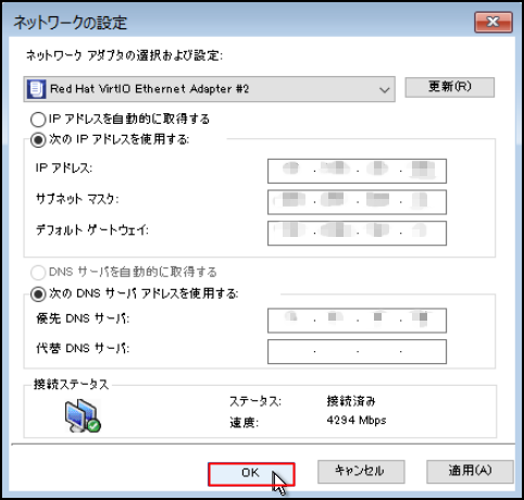 6.リストア用に作成したインスタンスのIPアドレスを入力します。入力後[OK]をクリックします。
