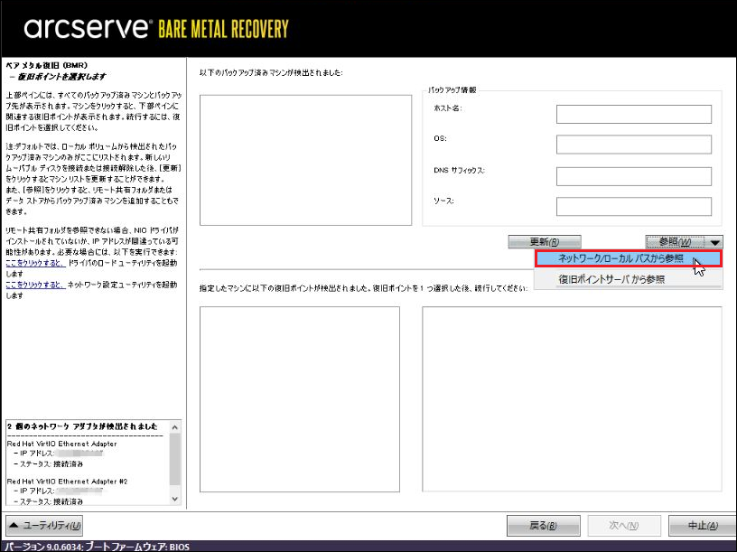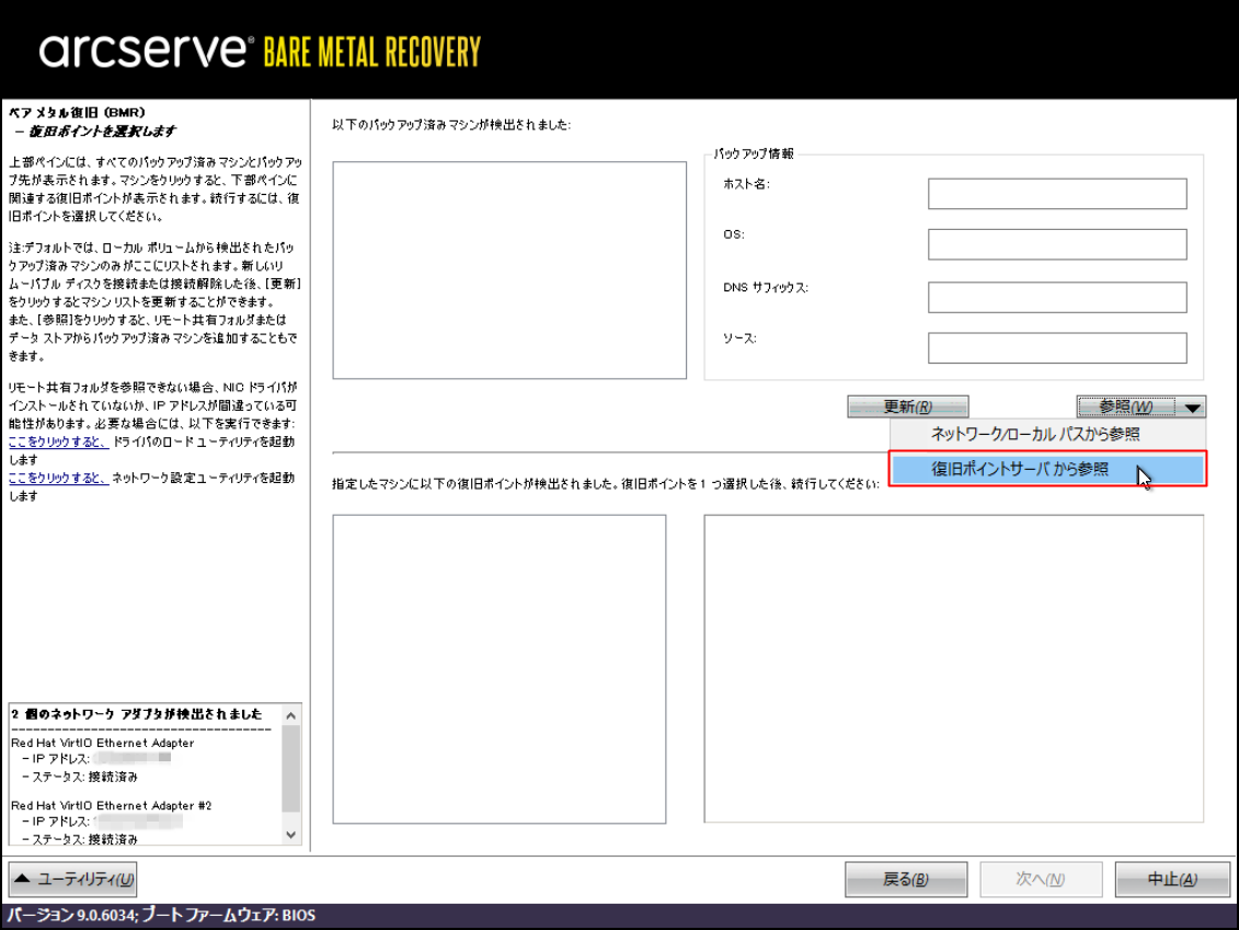 12.「復旧ポイントサーバー」にバックアップを保存した場合、下記画面の[参照]から[復旧ポイントサーバから参照]をクリックします。