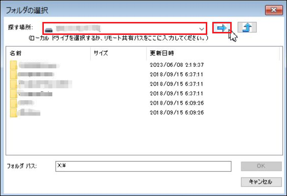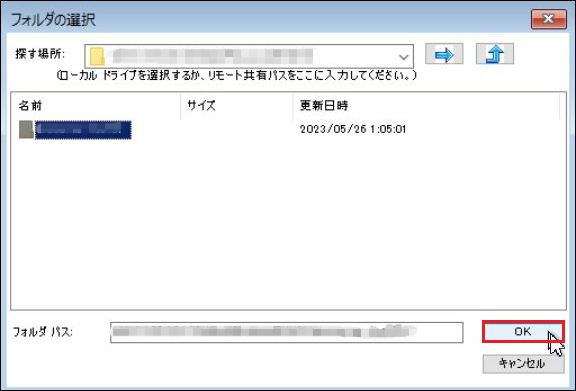 10.バックアップ先フォルダー内の復旧するサーバー名のフォルダーを選択し、[OK]をクリックします。
