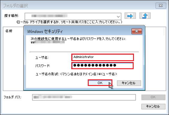 9.「ユーザ名」、「パスワード」を入力し、[OK]をクリックします。