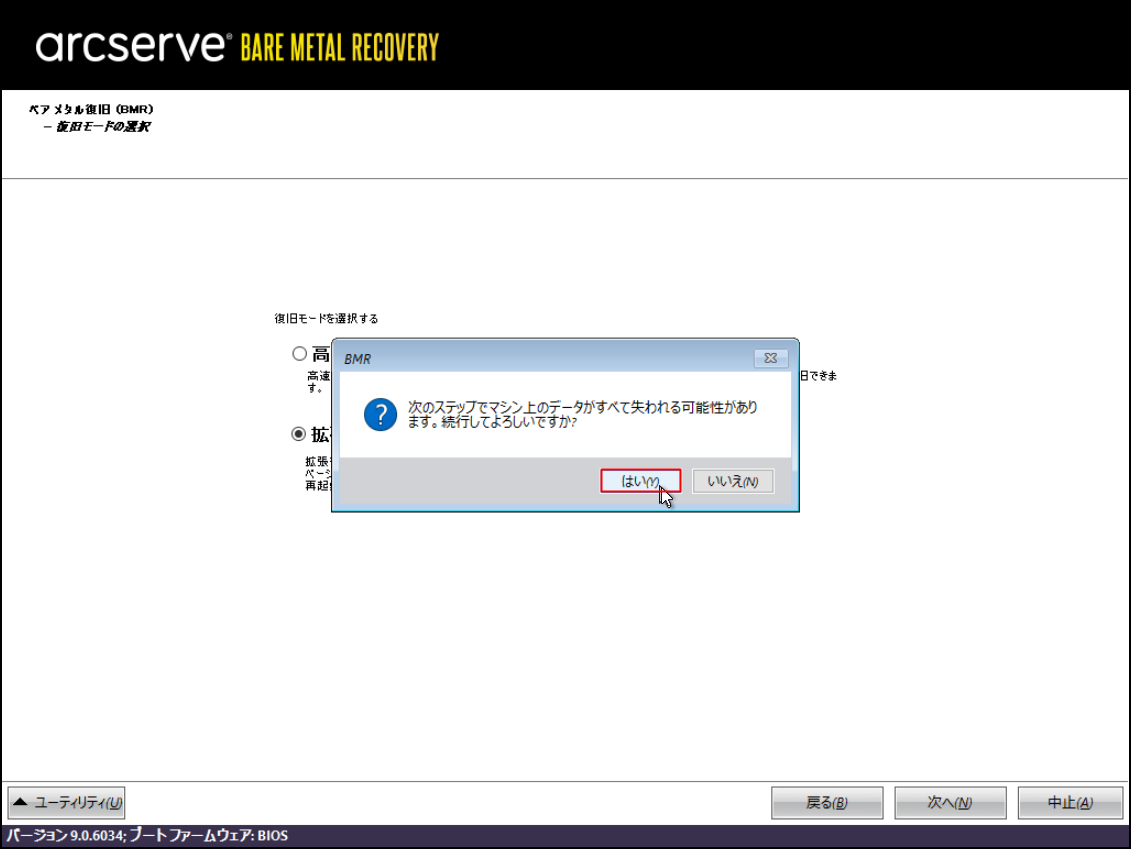 17.「BMR」ポップアップ画面が表示されたら[はい]をクリックします。
