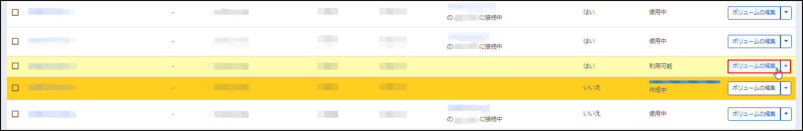 作成したボリュームの[ボリュームの編集]をクリックします。