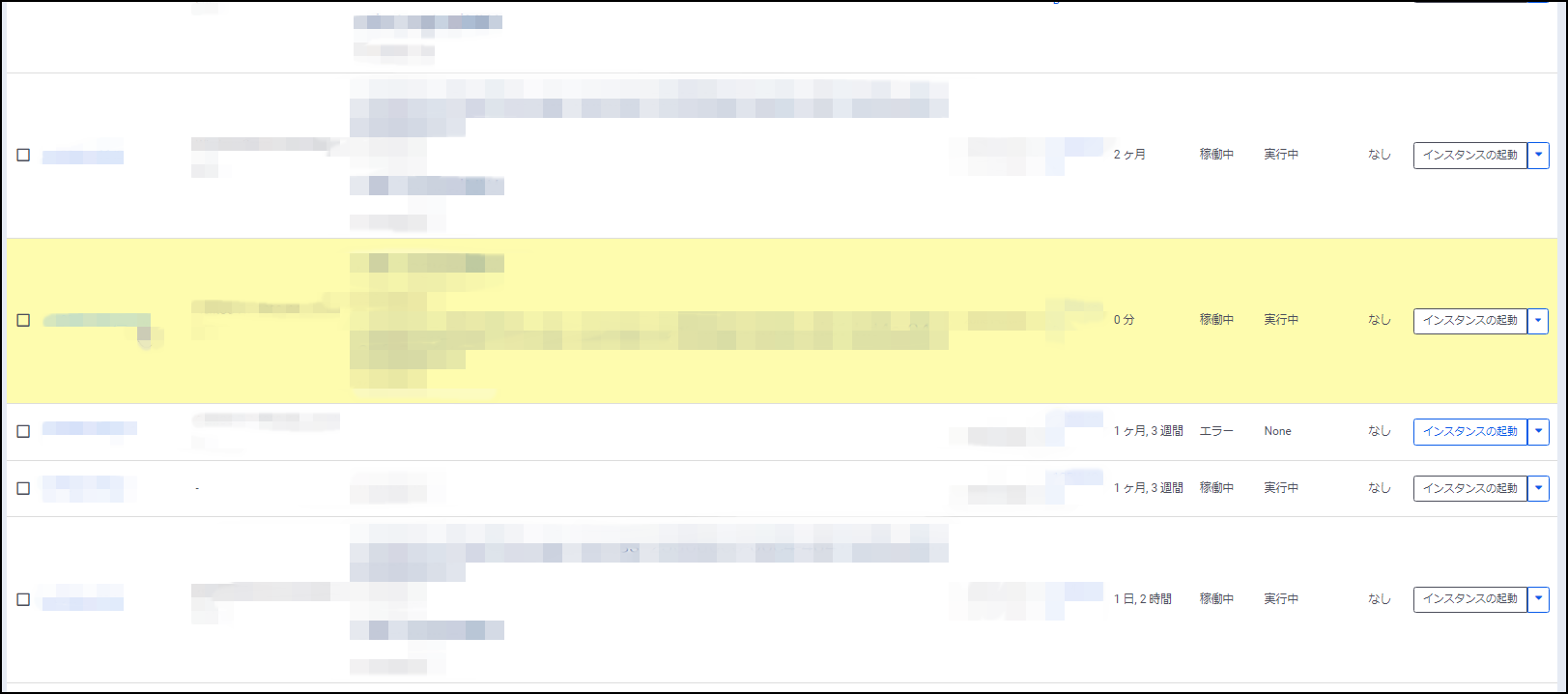 確認できたインスタンスを起動し、インスタンス名の項目をクリックして「インスタンス」画面を表示します。
