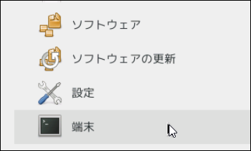 ※端末エミュレーターを開いたら、root権限をもつユーザーに変更してください。