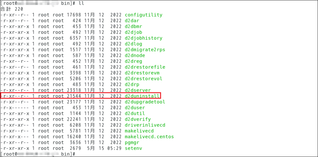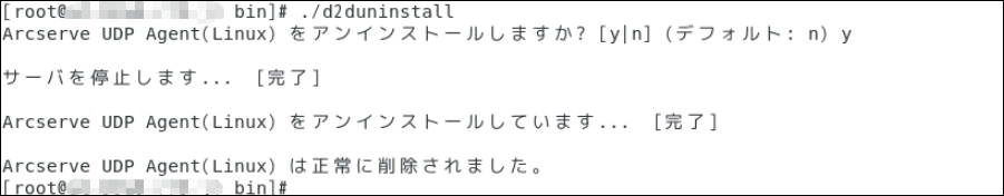 ※「/opt/Arcserve/d2dserver」および「/opt/Arcserve/d2dserver/usr」配下は削除されません。
