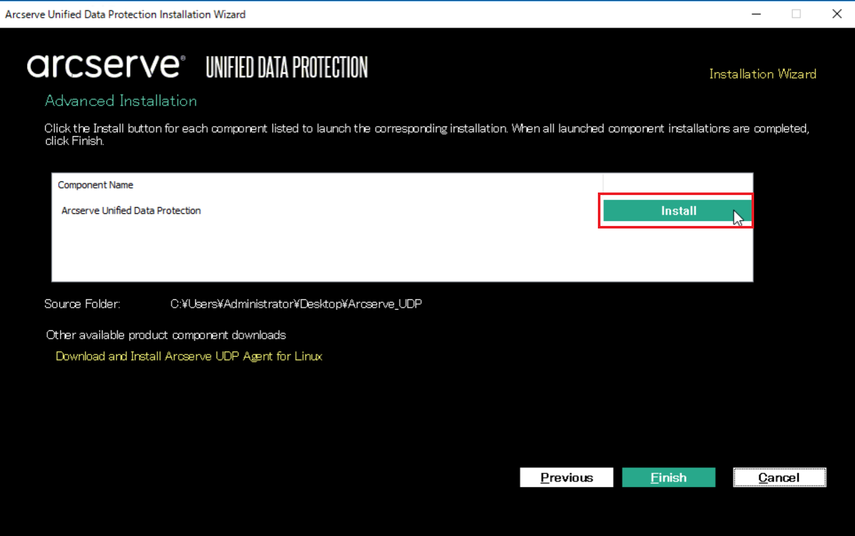 Arcserve Unified Data Protection の「Install」をクリックします。