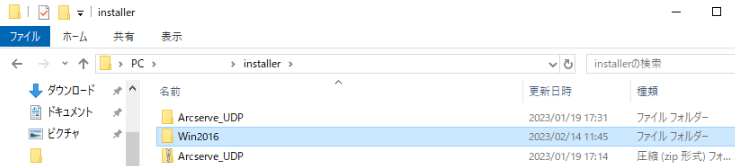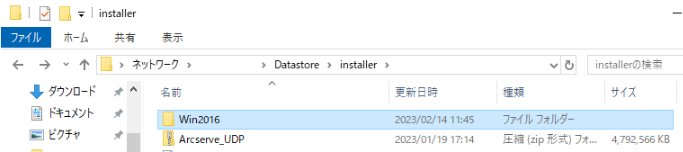 「Win2016」フォルダをリストア先ベアメタルサーバーの任意のフォルダに保存します。