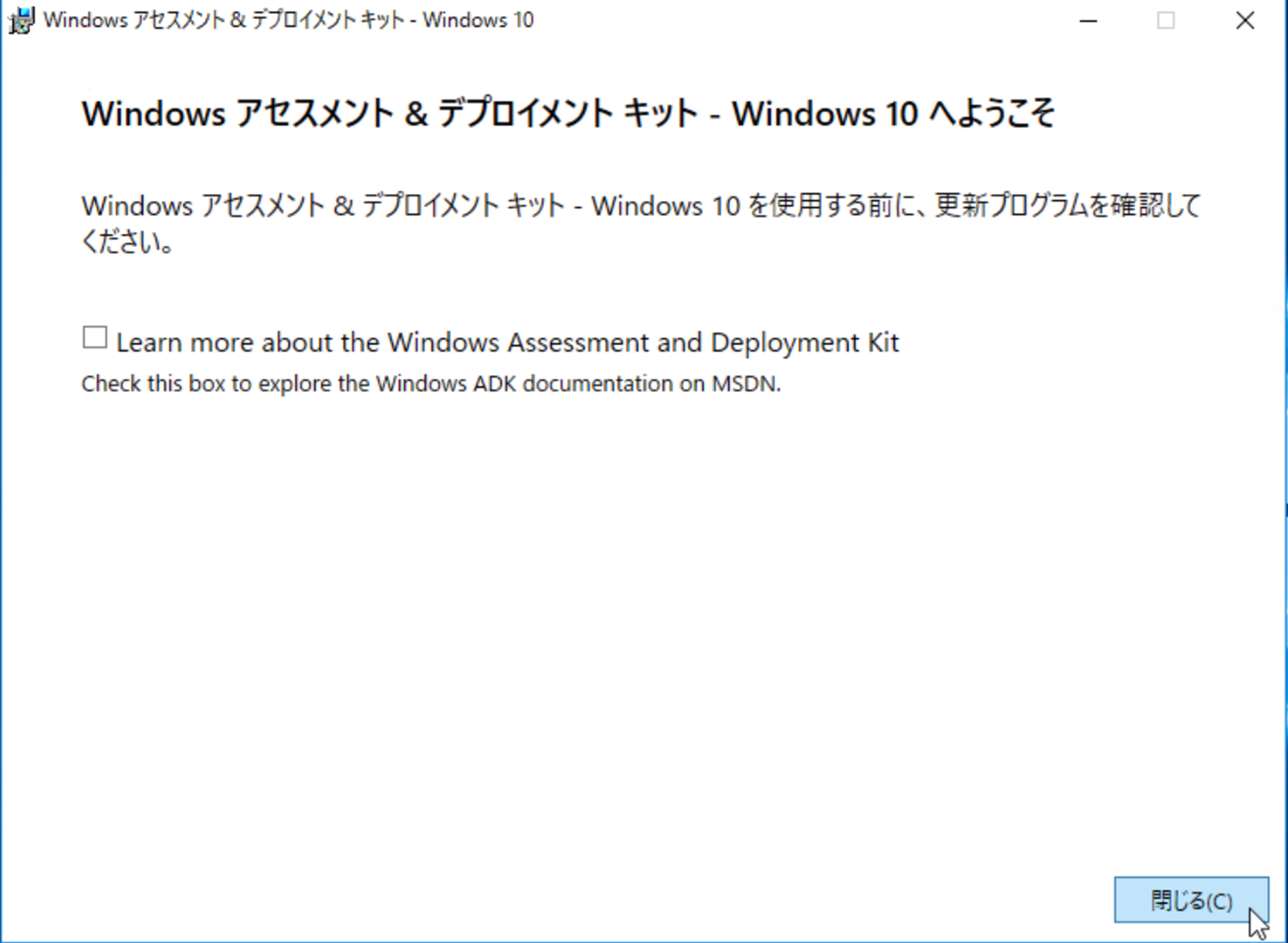 - 4.9. WindowsADKおよびWindowsPEインストール Windows Server2019編