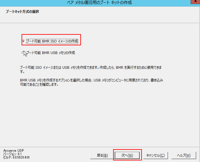 「ブート可能 BMR ISO イメージの作成」を選択し、「次へ」をクリックします。