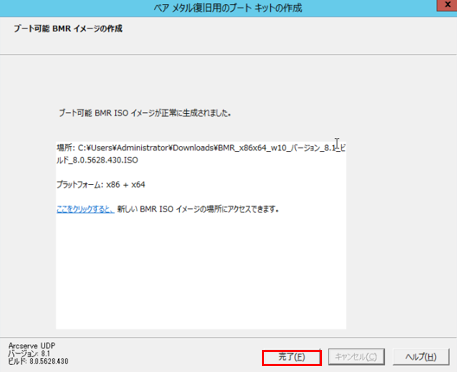 「x86 プラットフォーム用のBMRイメージ」および 「x64 プラットフォーム用のBMRイメージ」の両方にチェックを入れ、「次へ」をクリックします。