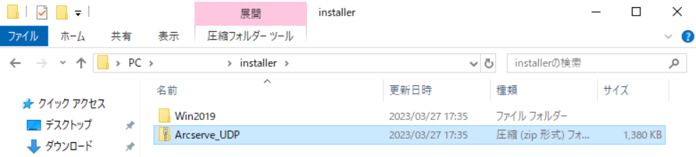 「ArcserveUDP.zip」ファイルをバックアップ元ベアメタルサーバーの任意のフォルダに保存します。