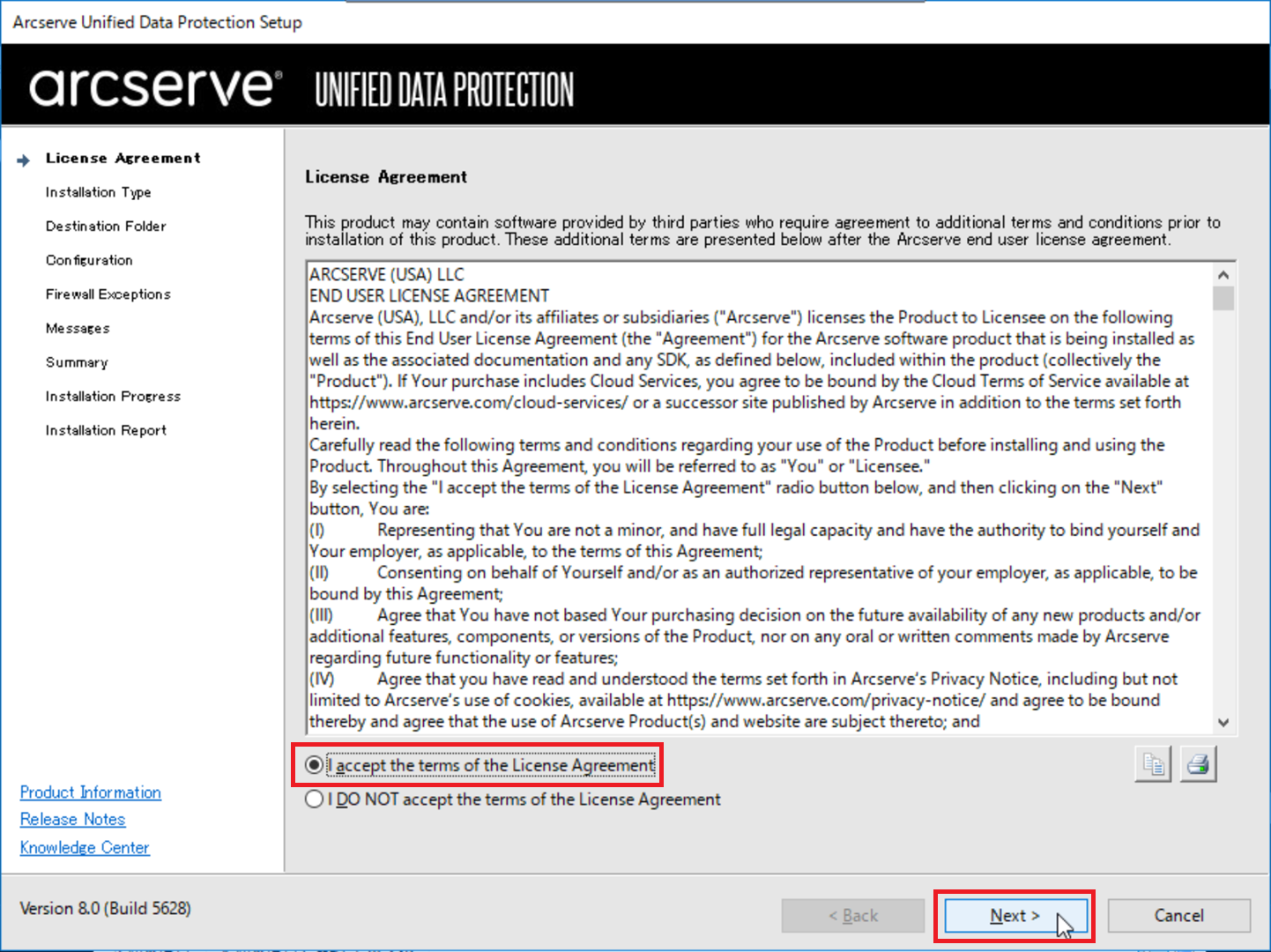 5.8. リストア先ベアメタルサーバーへのArcserveUDPインストール Windows Server2019編(v4フレーバー)¶