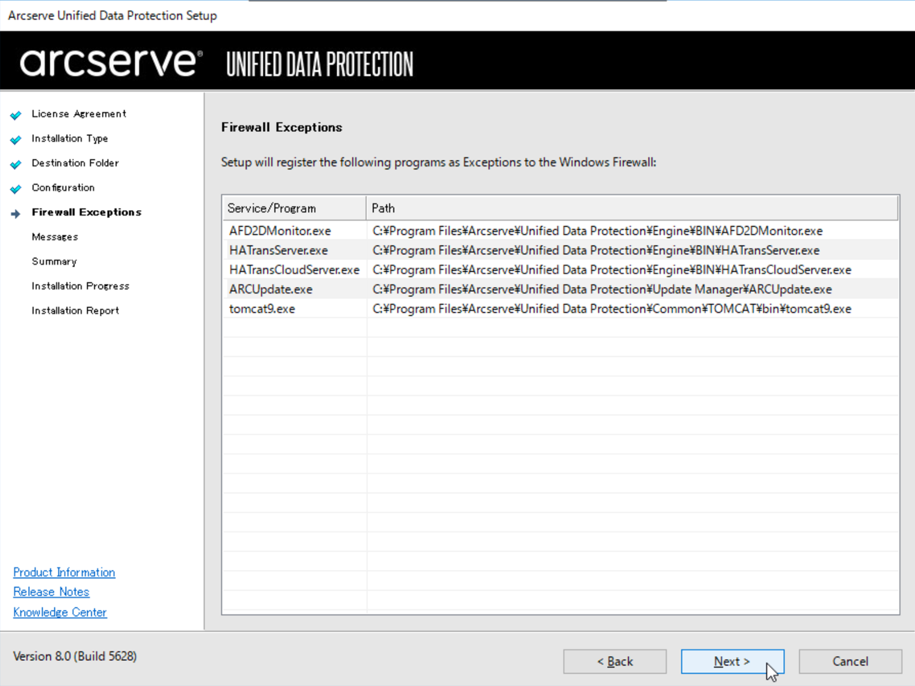 「Arcserve UDP Agent」がチェックされていることを確認し、「Next」をクリックします。
