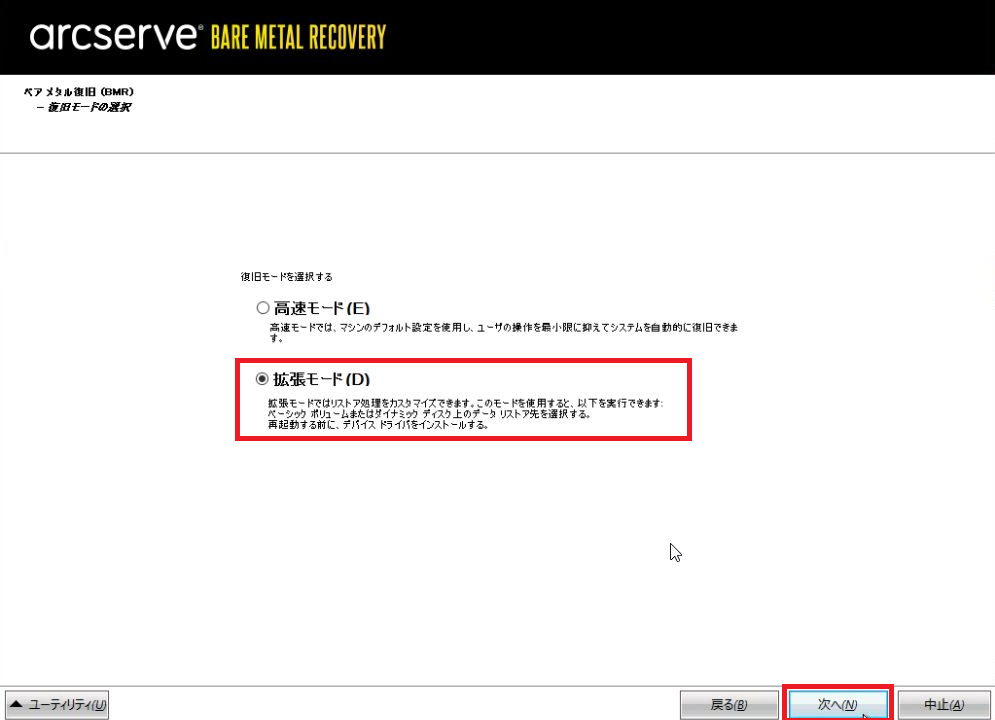 「拡張モード」を選択し、「次へ」をクリックします。
