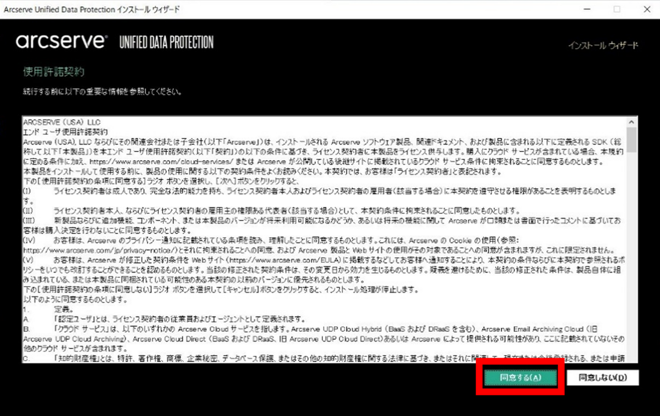 使用許諾契約画面が表示されたら「同意する」をクリックします。