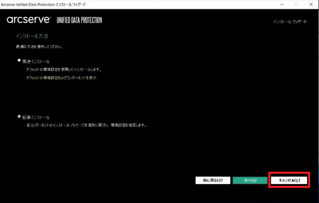 インストール方法画面が表示されたら「キャンセル」をクリックします。