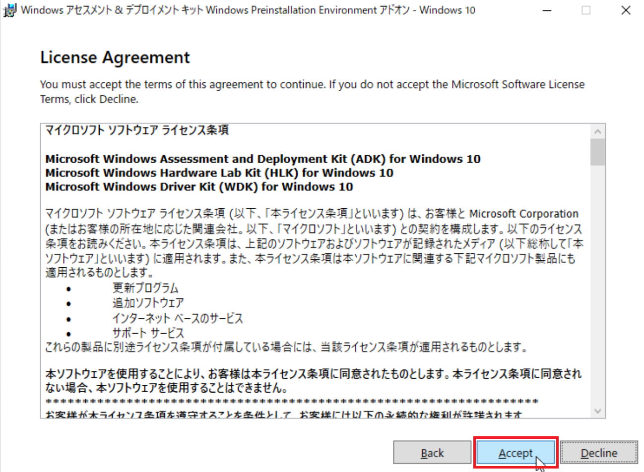 使用許諾契約画面が表示されたら「Accept」をクリックします。