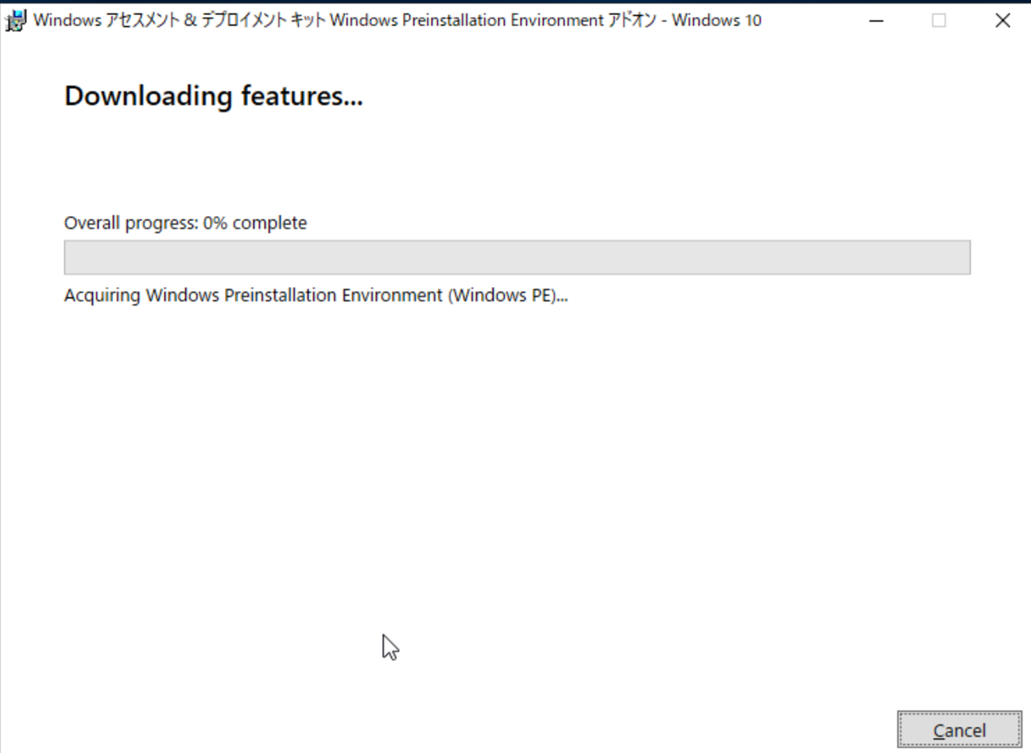 ※ダウンロードしたサーバーと、インストールするサーバーが別のため、インストール作業をキャンセルしています。