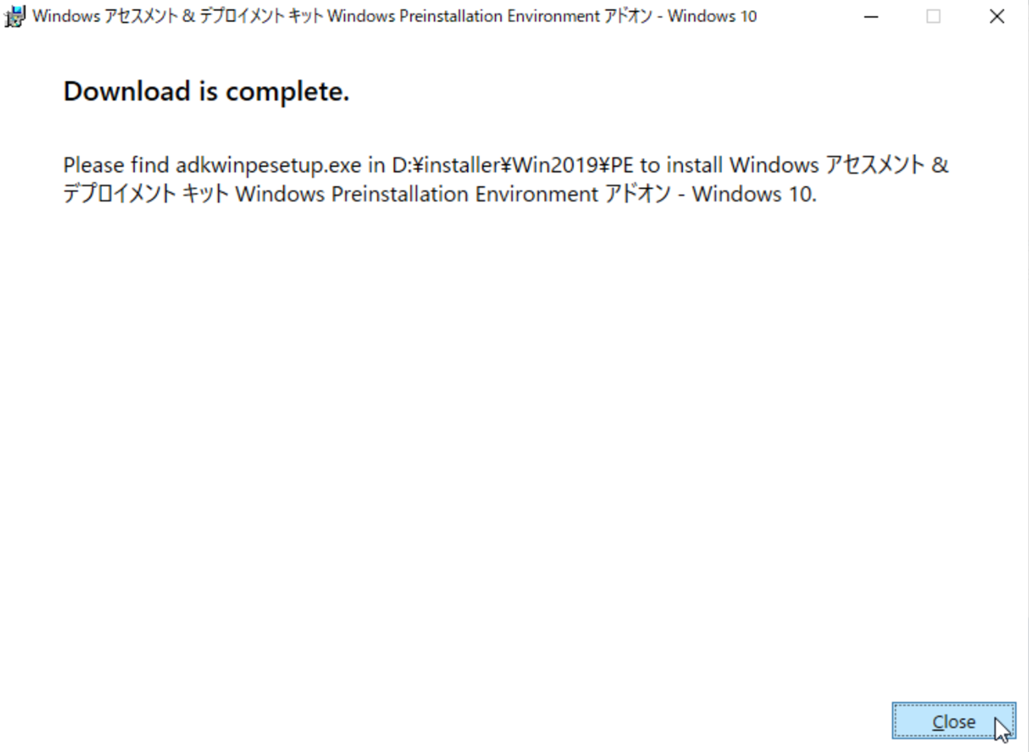 ダウンロードした「adkwinpesetup」をダブルクリックし、実行します。