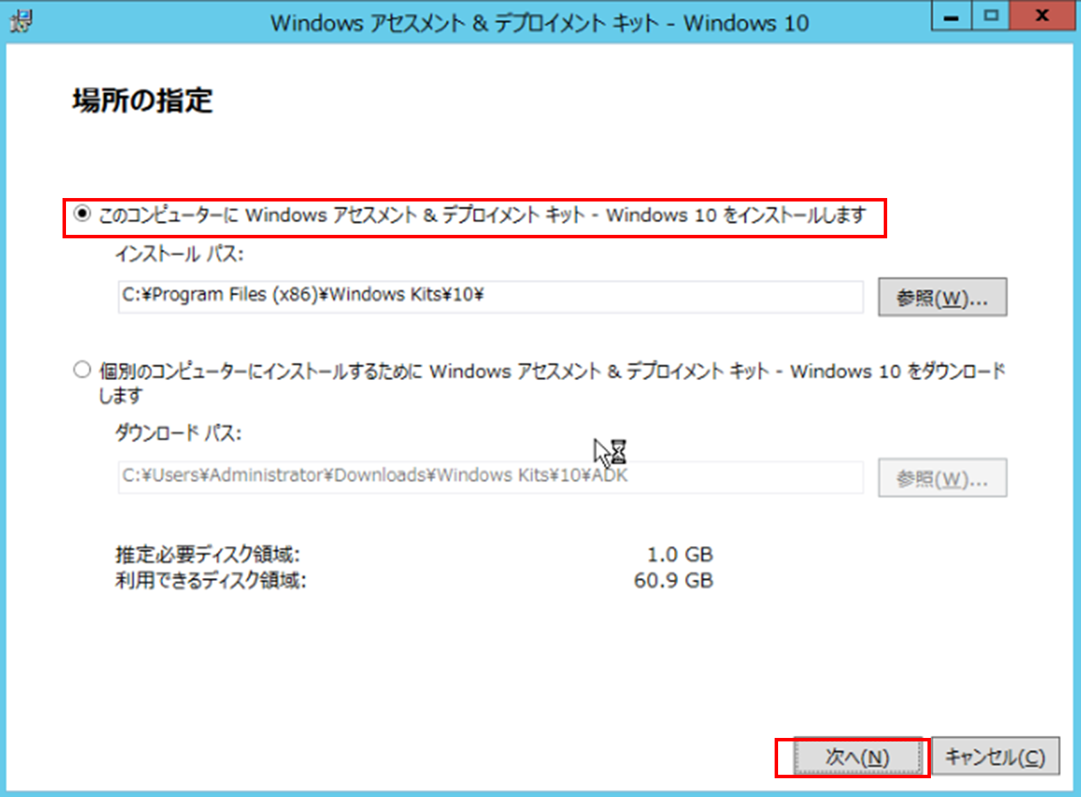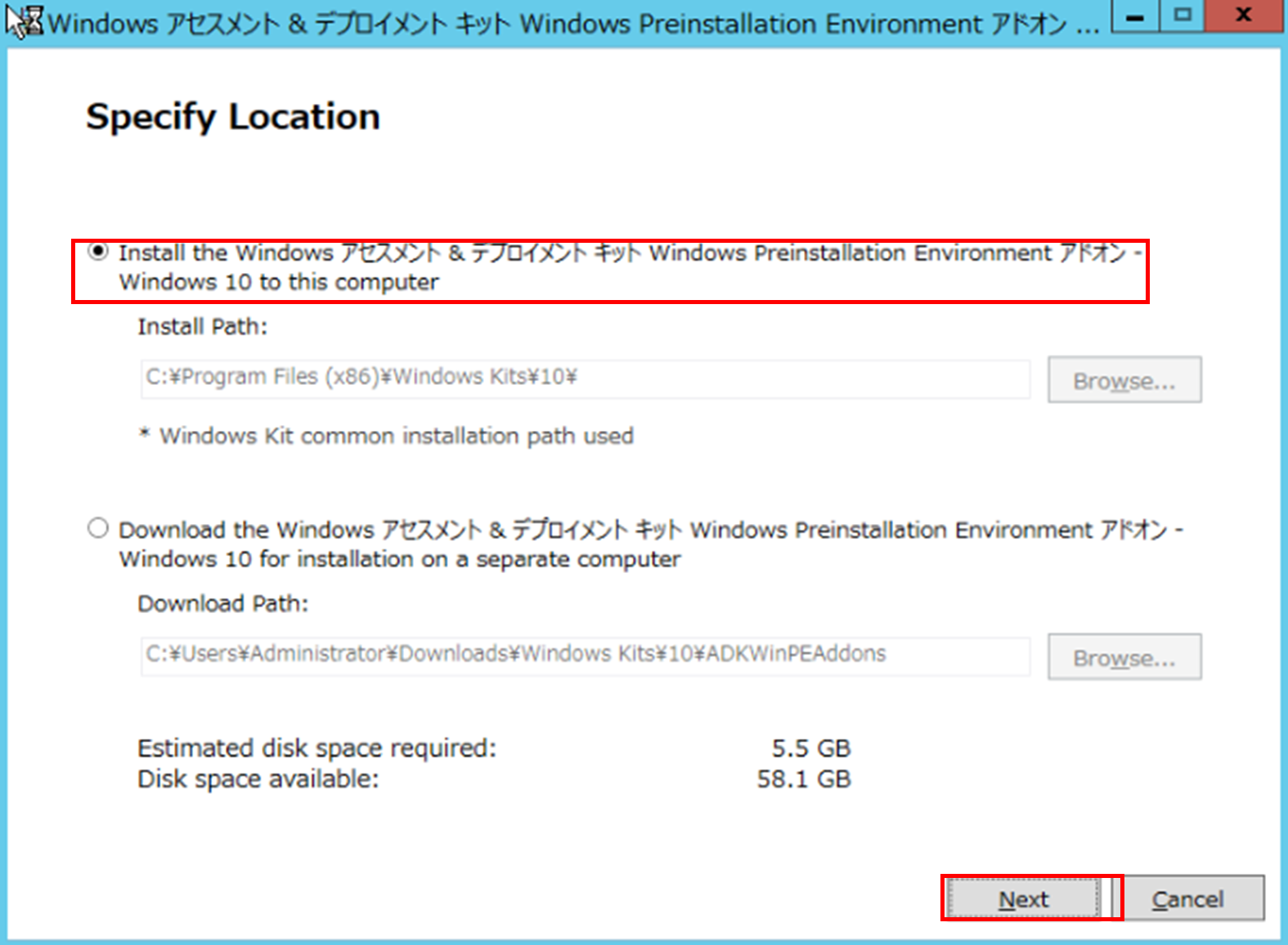 4.9. WindowsADKおよびWindowsPEインストール Windows Server2019編¶