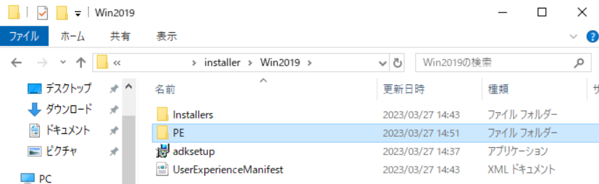 「Win2019」フォルダ内のPEフォルダを開きます。