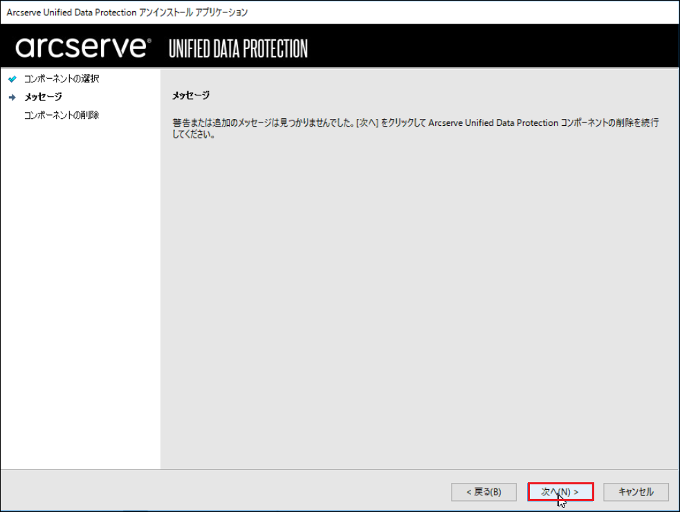 ※リストア先ベアメタルサーバーで、継続的にArcserveUDPによるバックアップを取得する場合は、アンインストール作業は不要です。ArcserveUDPによるバックアップリストア運用方法については、以下の構成ガイドをご参照ください。
