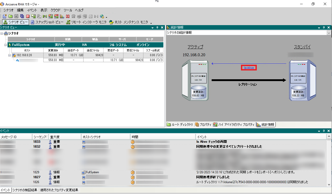 ・同期が完了するとレプリケーションが開始し、仮想アプライアンス側からIs Alive の監視が開始されます。(Is Alive のチェックをオフにしていても矢印が表示されます)