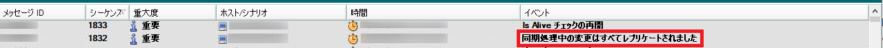 あわせて、イベントから、[同期処理中の変更はすべてレプリケートされました] と表示されていることを確認してください。