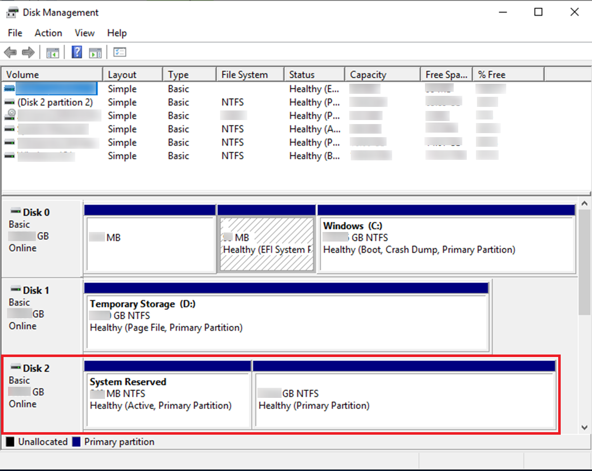 なお、セカンダリサイトのArcserve RHA 仮想アプライアンスのOSにログインし、「ディスクの管理」でプライマリサイトからレプリケーションされているディスクを確認することができます。