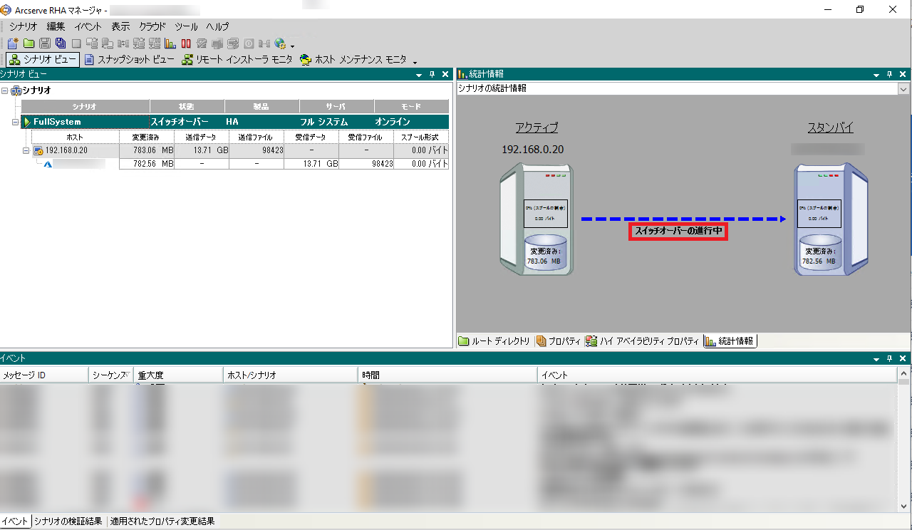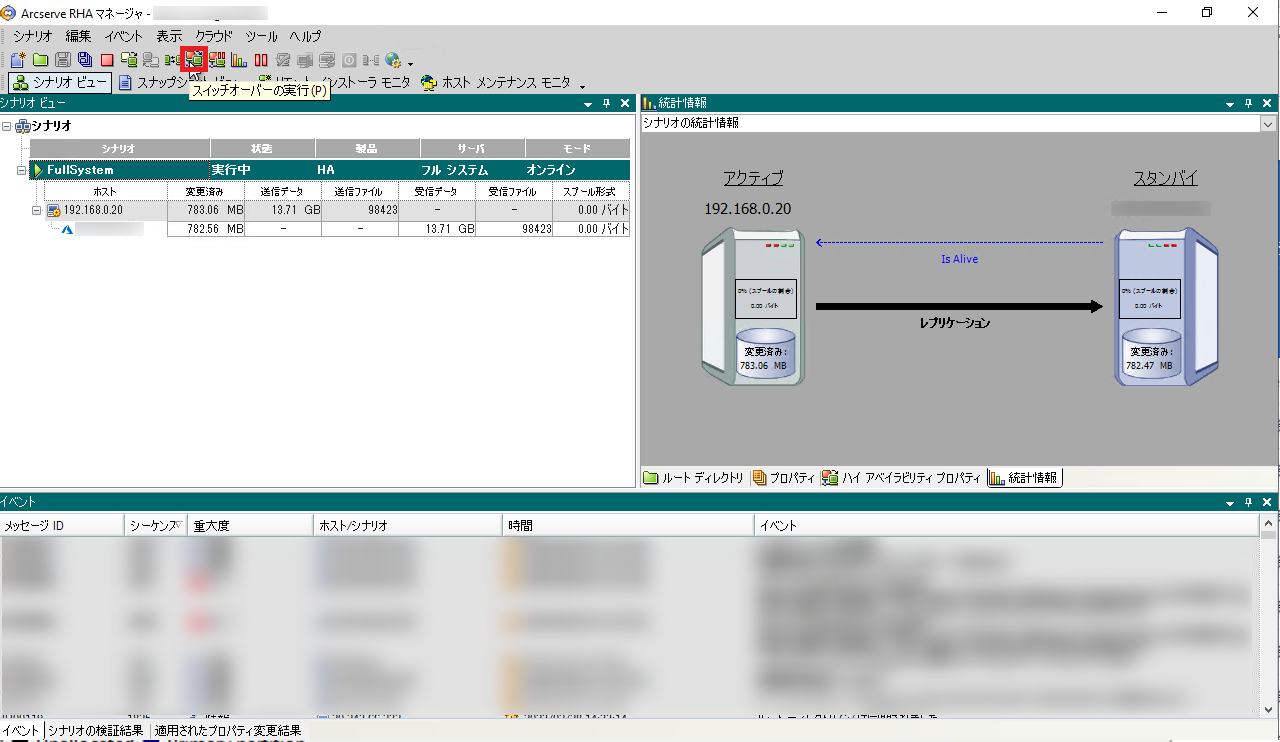 ・スイッチオーバーするシナリオを選択し、ツールバーの [スイッチオーバーの実行] ボタン、またはメニューの [ツール] - [スイッチオーバーの実行] をクリックします。