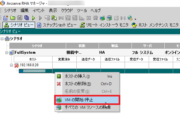フルシステム HA シナリオ環境では、他のシナリオで用意されている「ホスト メンテナンス」機能をご利用いただけません。