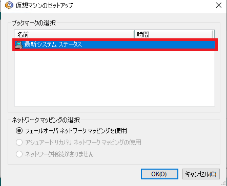 ・仮想マシンのセットアップが表示されますので、[最新システム ステータス] にカーソルが当たっていることを確認して [OK] をクリックします。