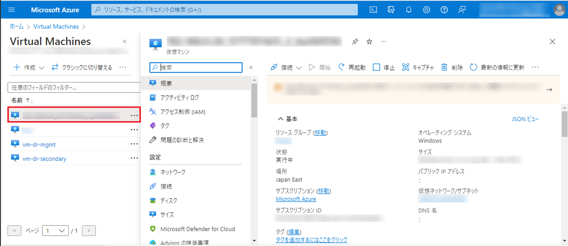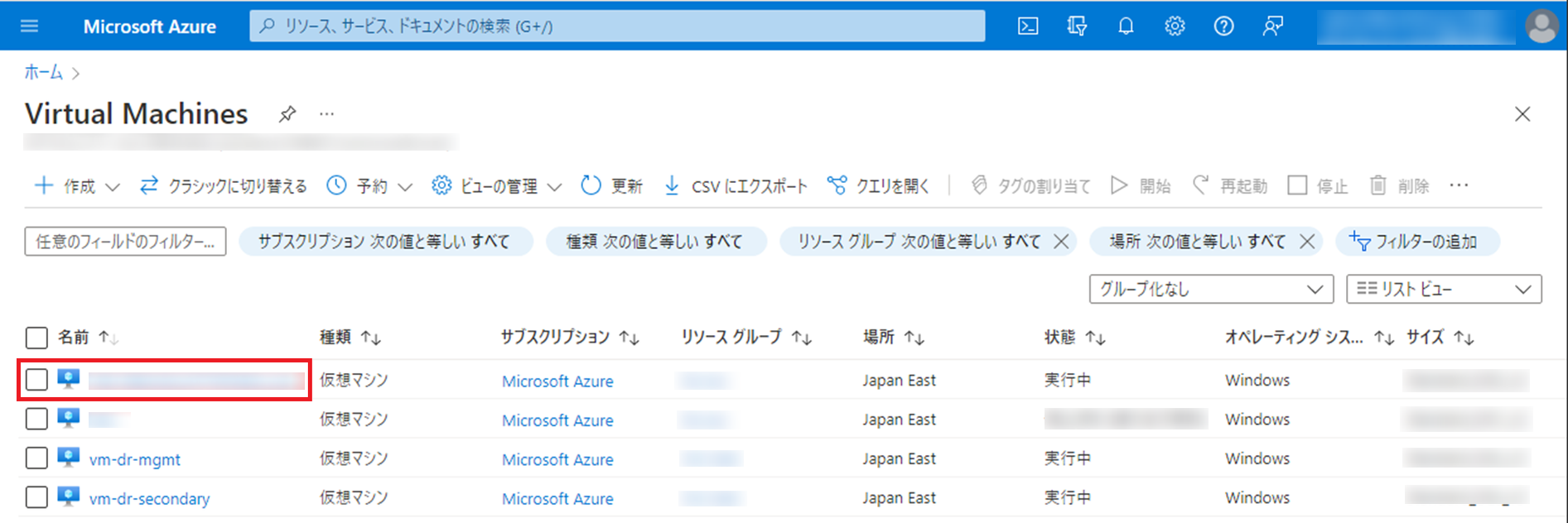 ・Azureポータル>Virtual Machinesからスイッチオーバーされた仮想マシンを確認します。