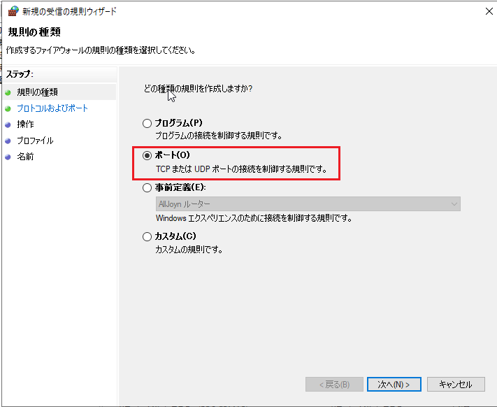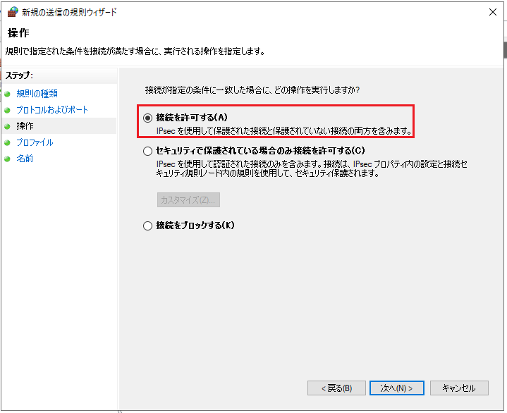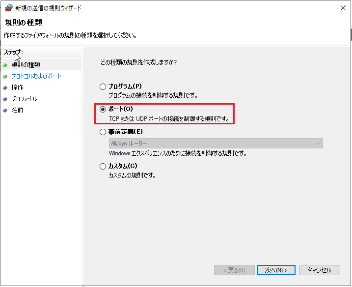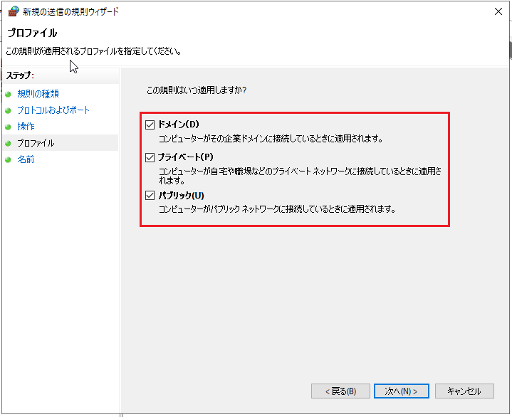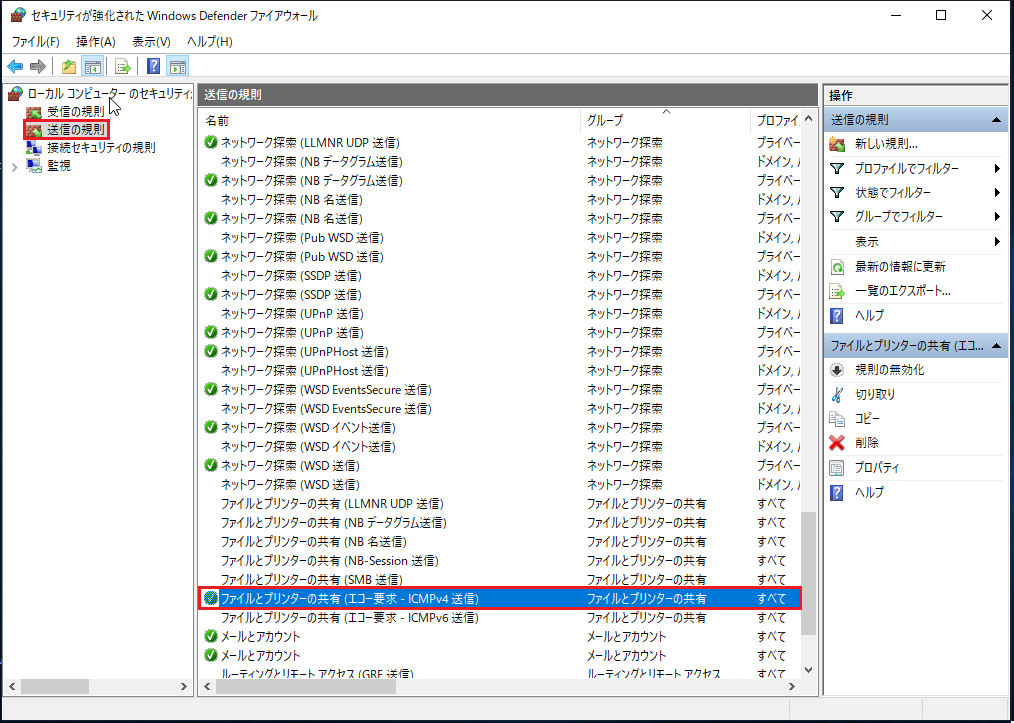 設定>ネットワークとインターネット>Windowsファイヤーウォール>詳細設定を開き、
