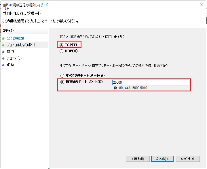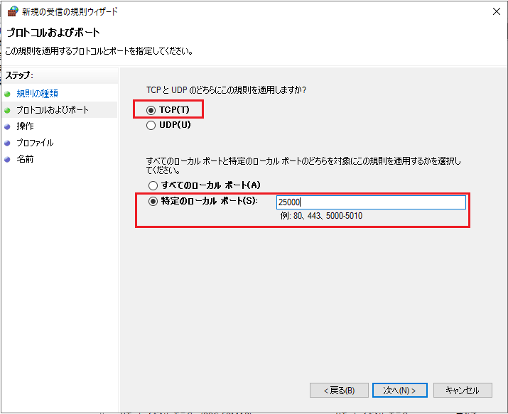 また、Arcserve Replication and High Availabilityのレプリケーションをするために、25000番ポートを使うため、以下の設定をします。