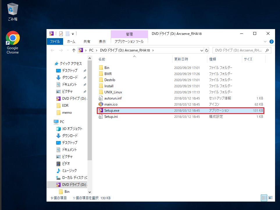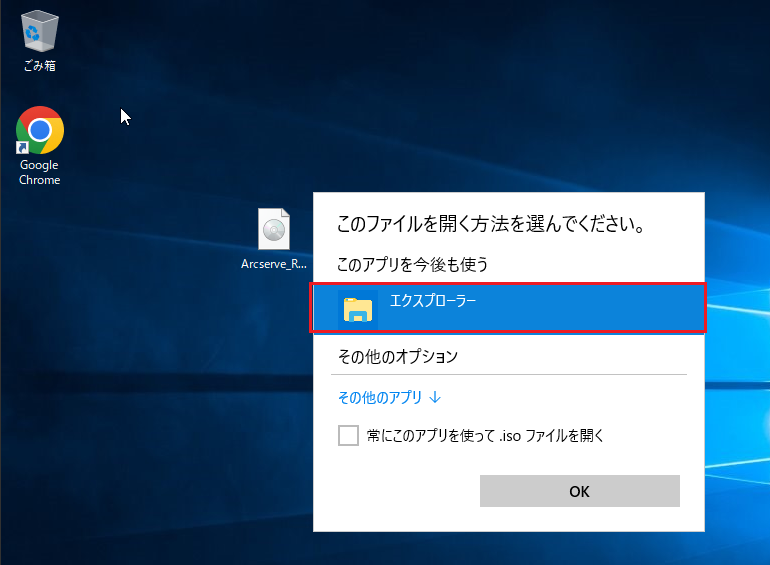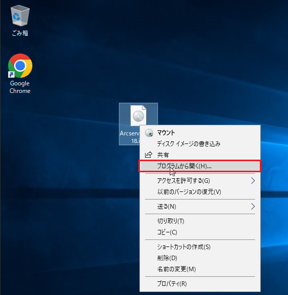 (2)ダウンロードしたisoファイルを右クリックし、「プログラムから開く」を選択し、エクスプローラ画面から、”Setup.exe”を実行します。