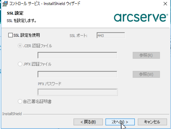 (9)SSL設定はデフォルトのまま、[次へ] をクリックします。