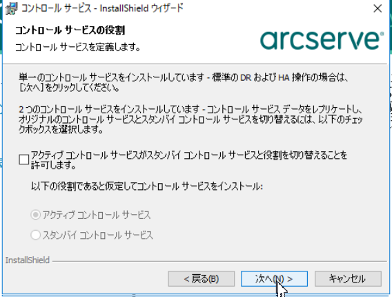 (11)コントロールサービスの役割はデフォルトのまま、[次へ] をクリックします。