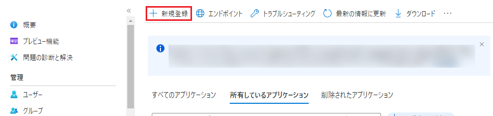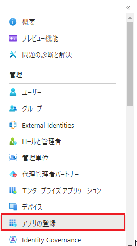 [Azure Active Directory]を選択し、[アプリの登録]をクリックします。