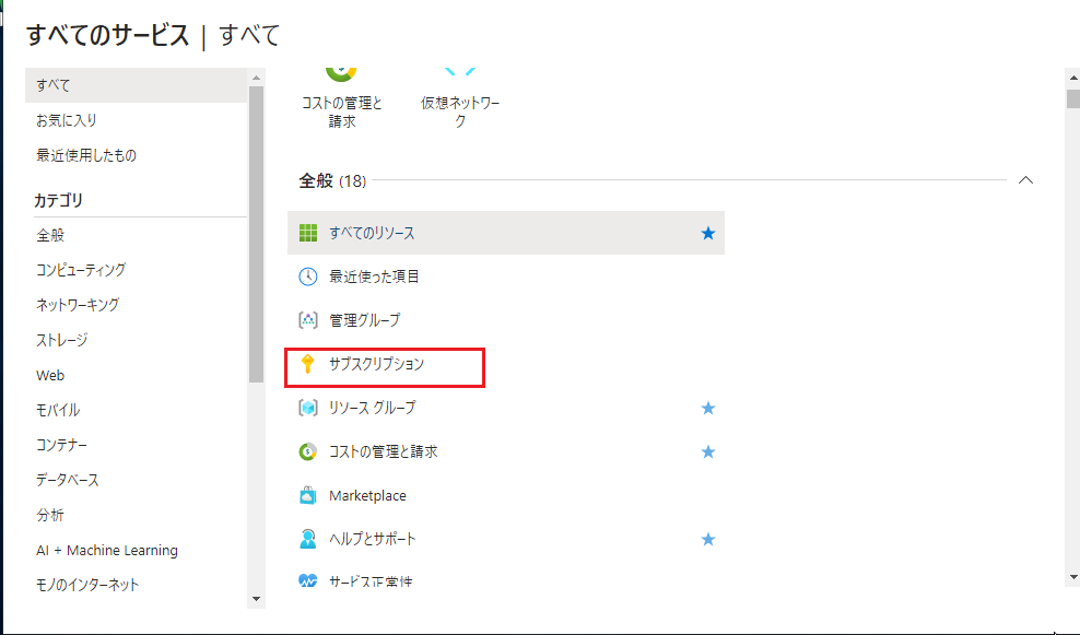 ・次に、「すべてのサービス」>「サブスクリプション」を選択します。