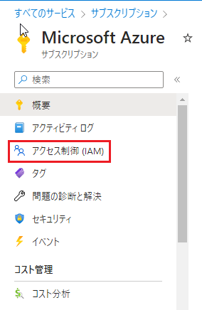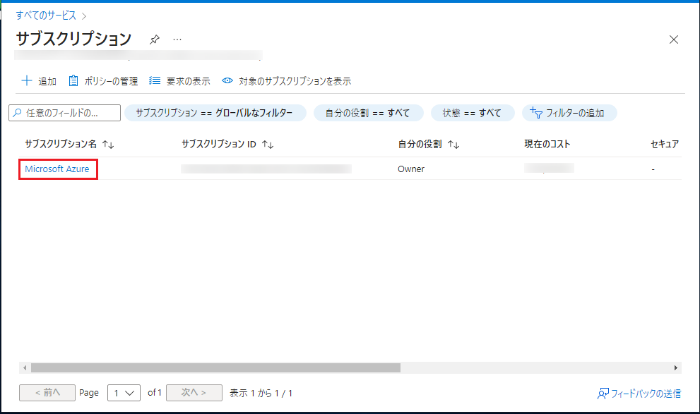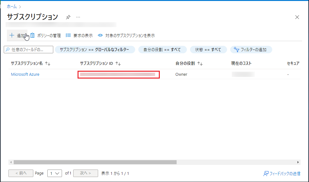 >サブスクリプションID:Azureポータル画面:ホーム>サブスクリプション