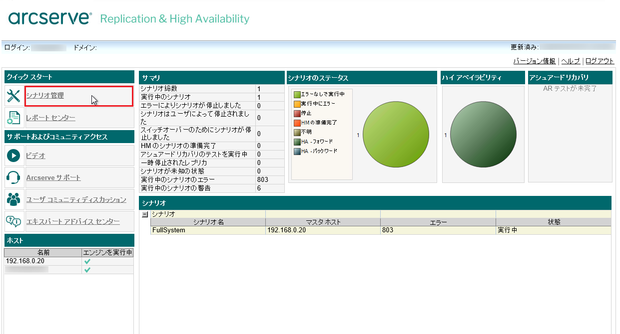 ・「シナリオ管理」をクリックし、Arcserve RHAマネージャを起動します。